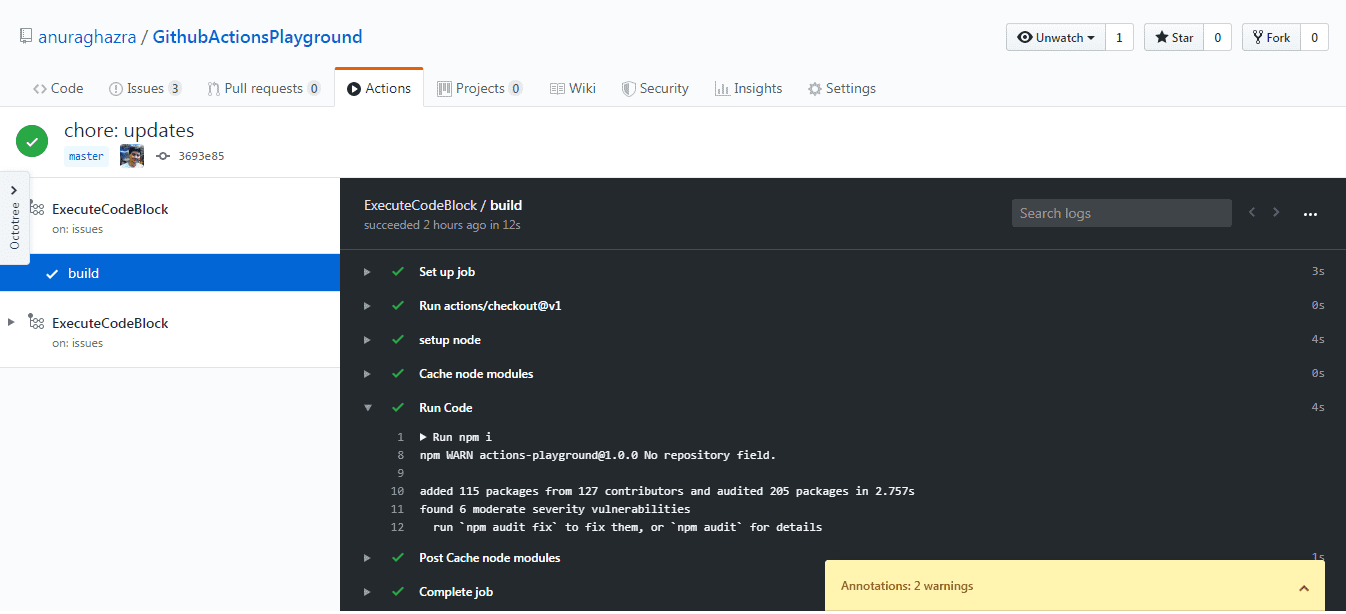 })();Now we need to loop through all the issues and parse the markdown to find the markdown codeblock and use vm.run() to run the codeblock.